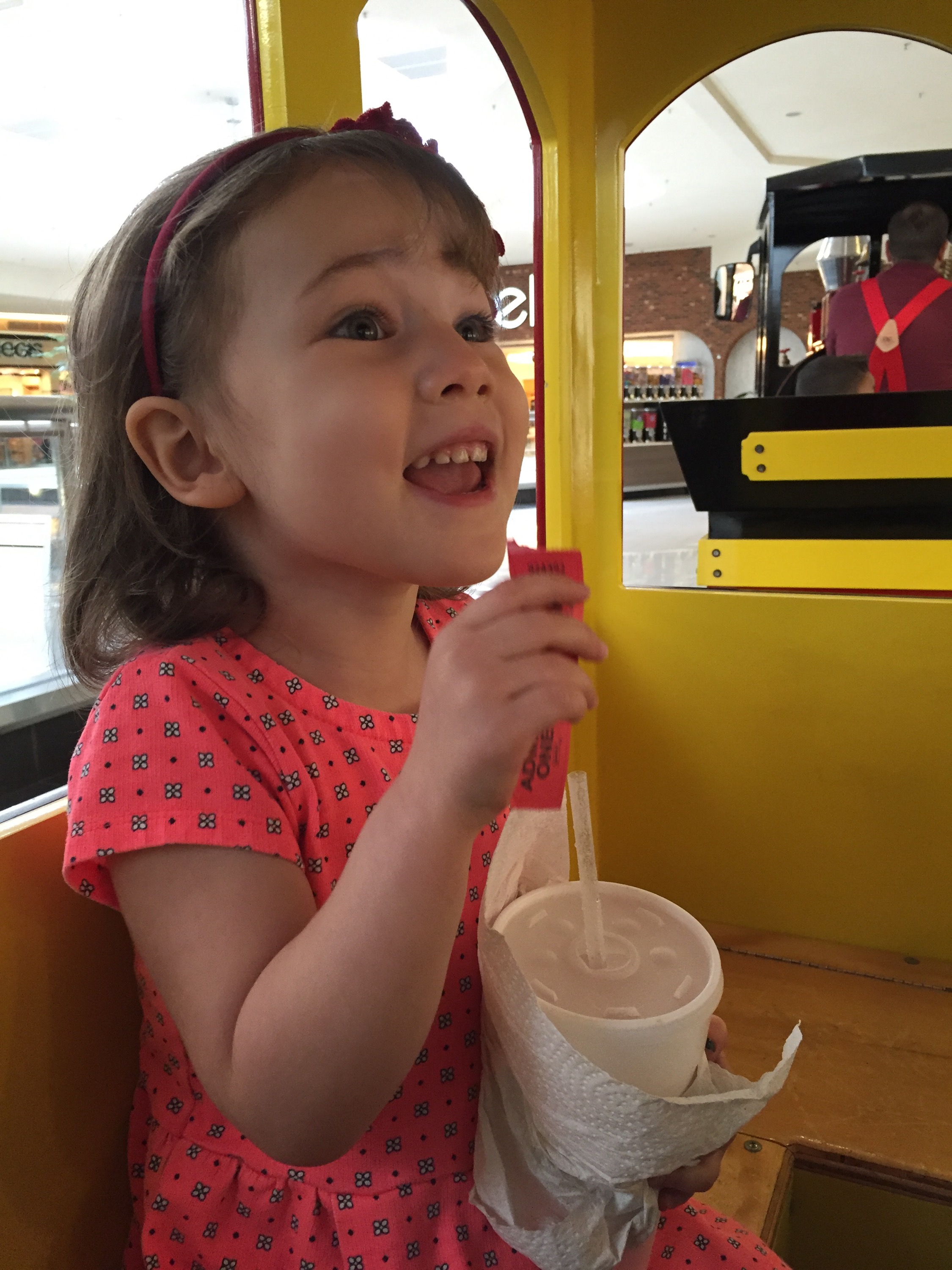 And you might have seen a little bit about this on my Instagram… The highlight of EK’s week was a trip to the mall, because we rode the little train. If you recall her train obsession, you know it was a big moment, so obviously I took a bunch of pictures.