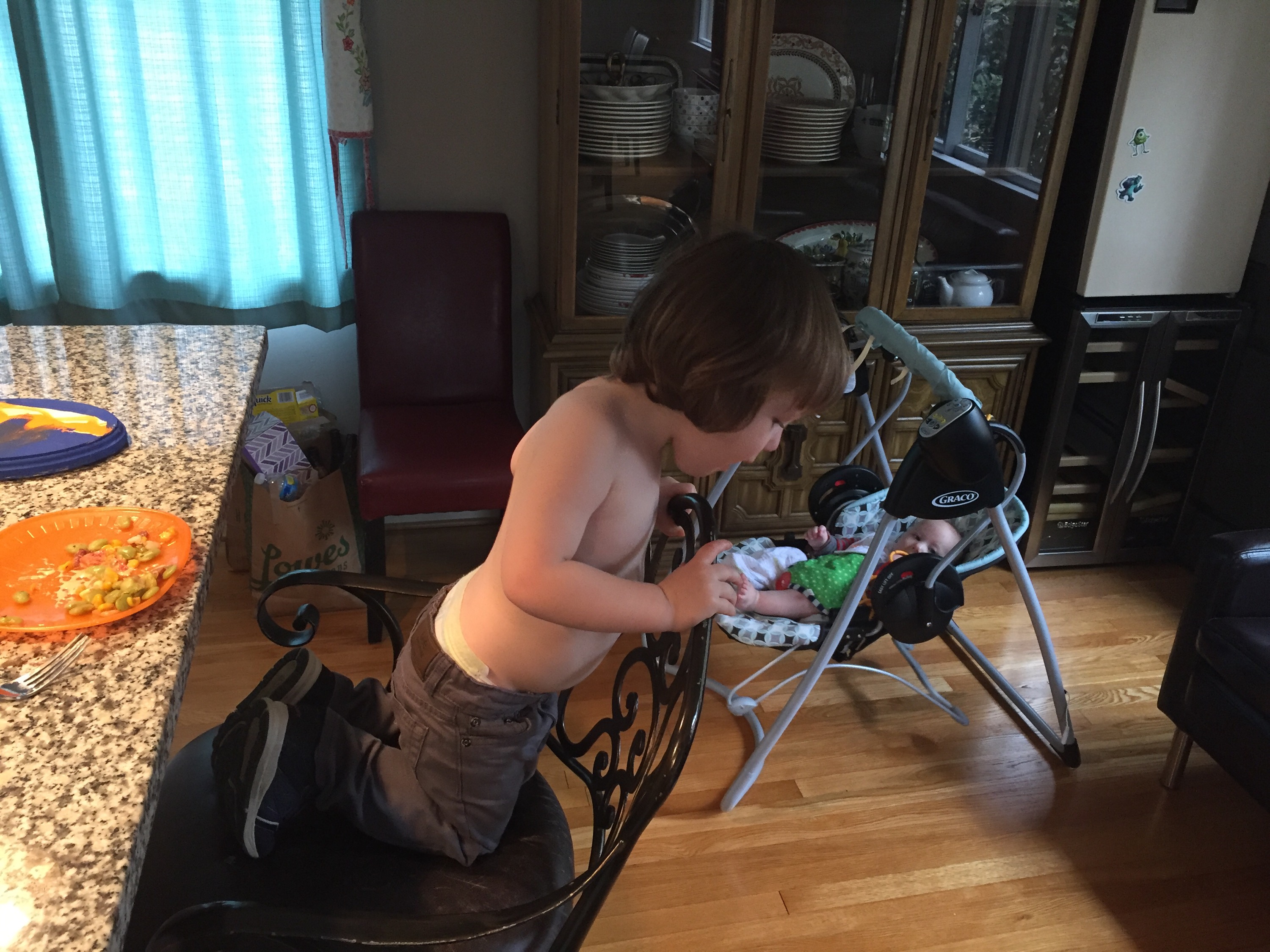 Eating homemade ramen one night, and using chopsticks (obviously), EK was using her chopsticks to make letters (brilliant, by the way) and J was watching her in awe. He kept saying, “That’s funny, Ella Kate!” He loves her.