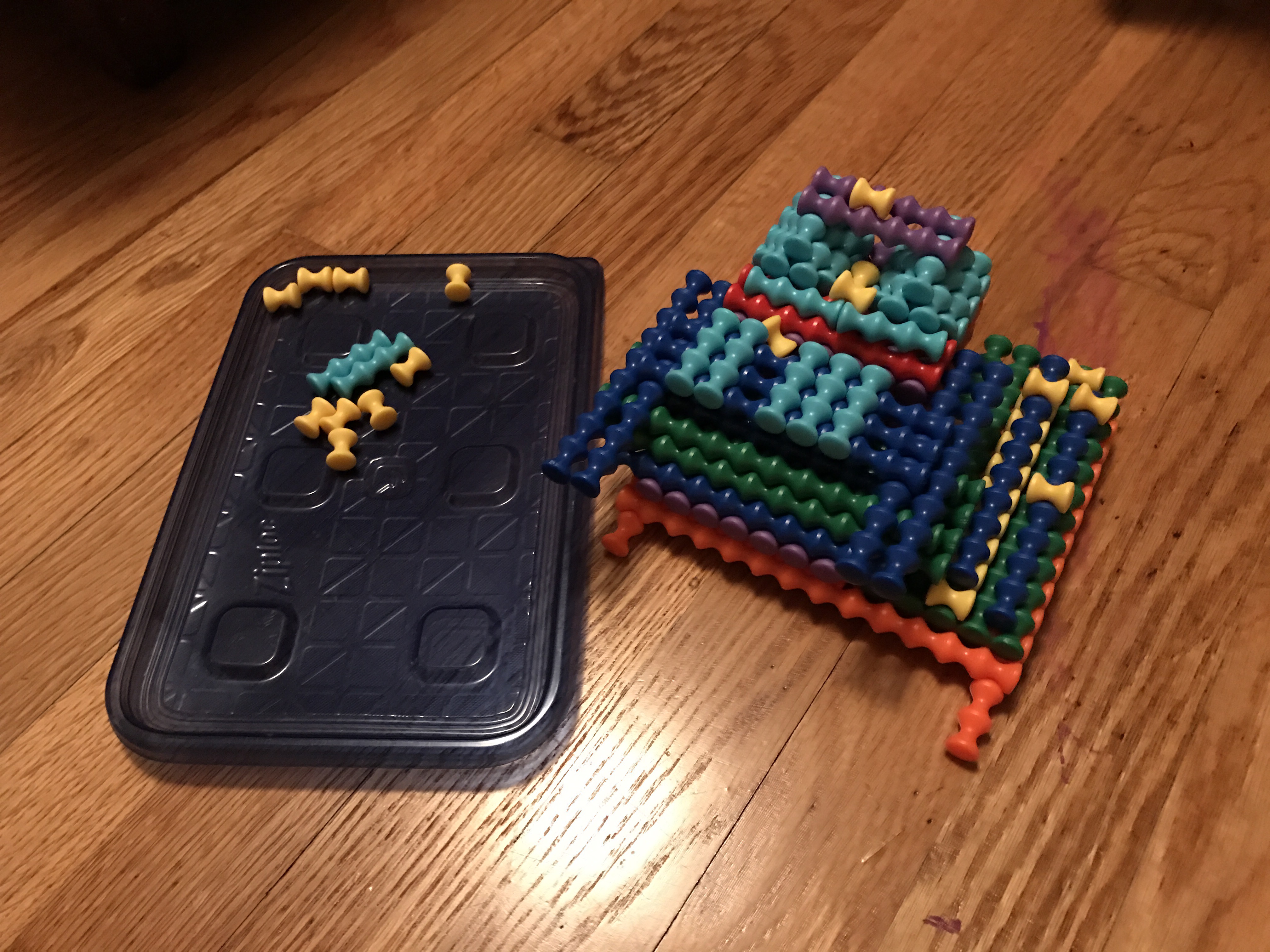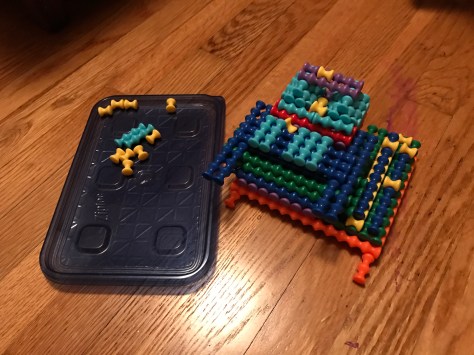 EK and J have been making “birthday cakes” out of these manipulatives. EK made one on my bedroom floor, and J came in and saw it…