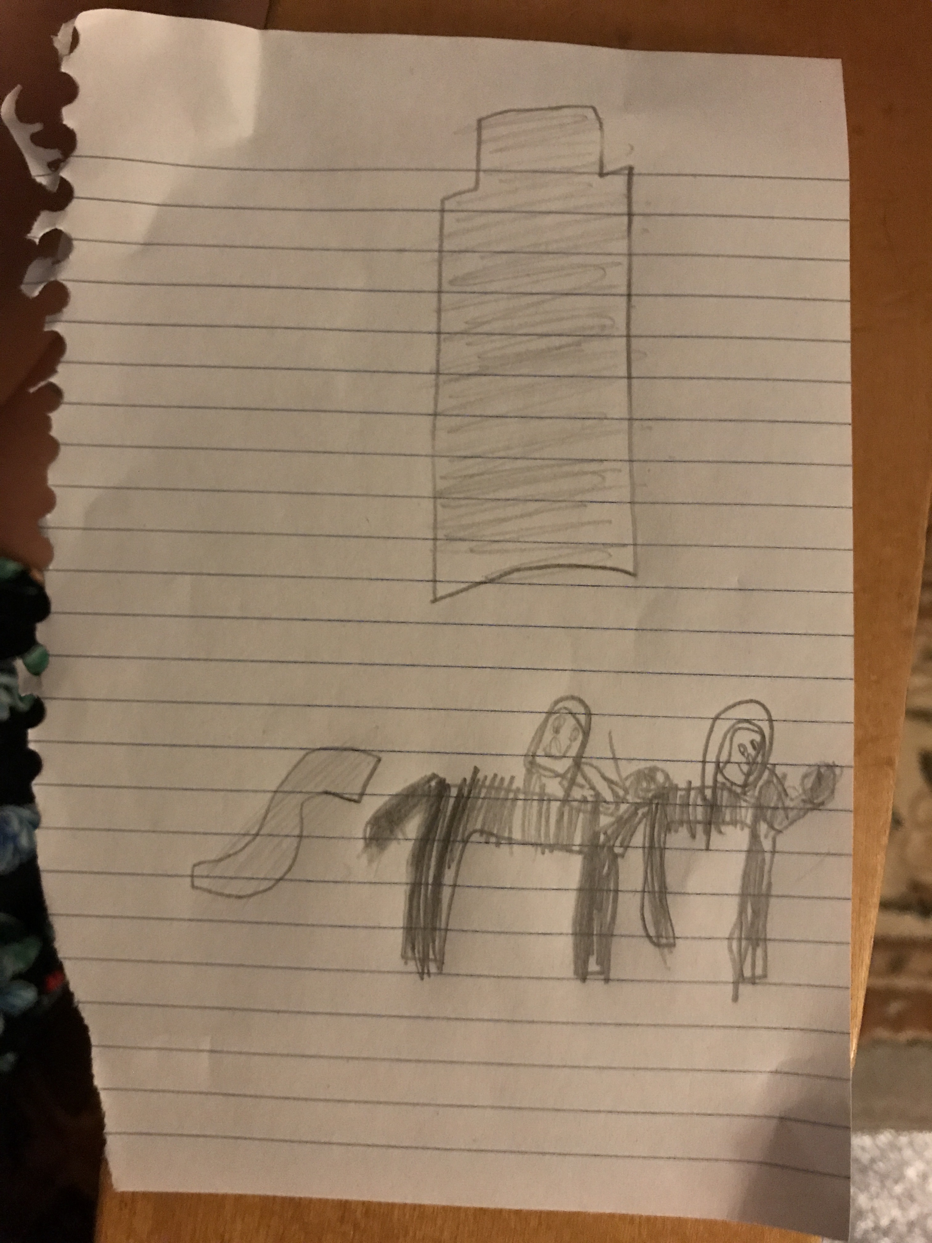 EK: That’s me and J on a horse and we went past a river, and past a waterfall, and then we were home!