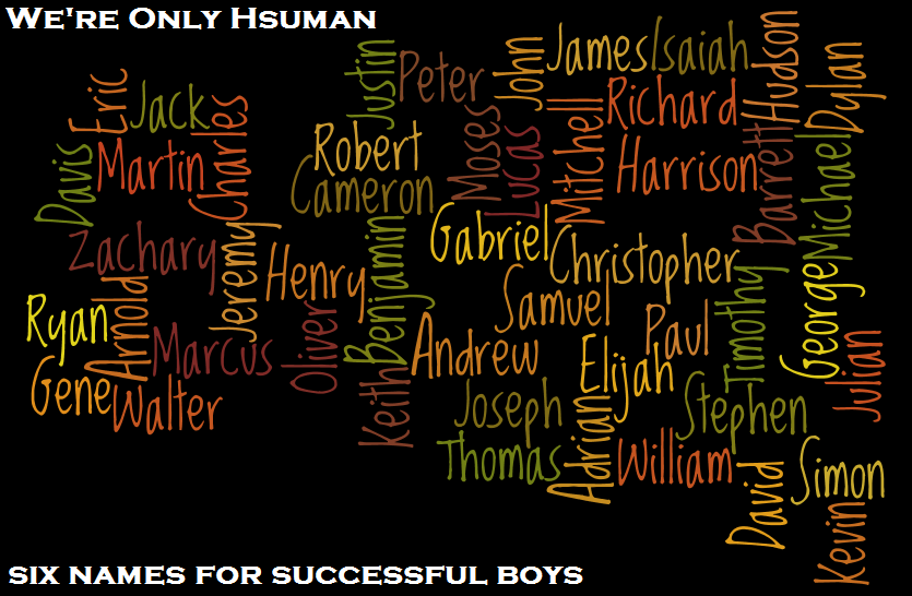 4. I don’t want his first name to be one syllable. I know, I know. But one syllable in the first name AND the last name just sounds choppy.(I’m getting ridiculous, I know.) Jack Hsu. Bob Hsu. You get my point.